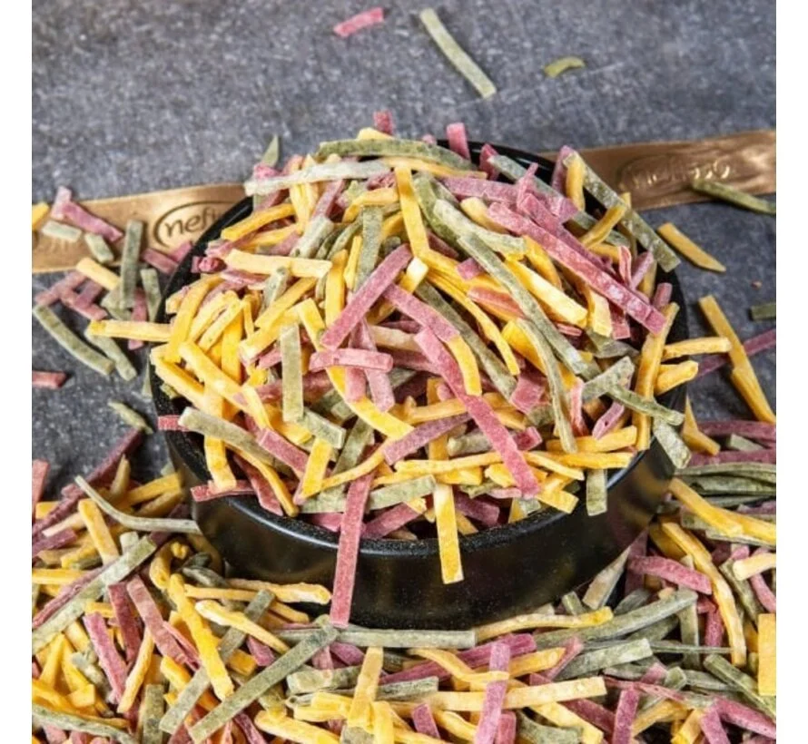 Anadolu Tadı Sebzeli Erişte 500g, geleneksel yöntemlerle hazırlanmış, doğal sebzelerle zenginleştirilmiş özel bir erişte çeşididir. Ispanak, havuç ve benzeri sebzelerle renklendirilen hamur, ince şeritler halinde kesilip kurutularak hazırlanır.
