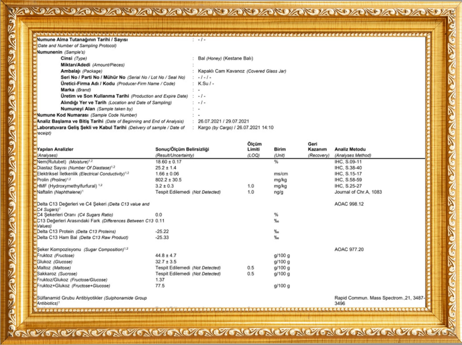 Kestane balının karakteristik özellikleri: